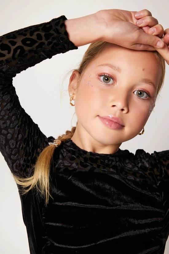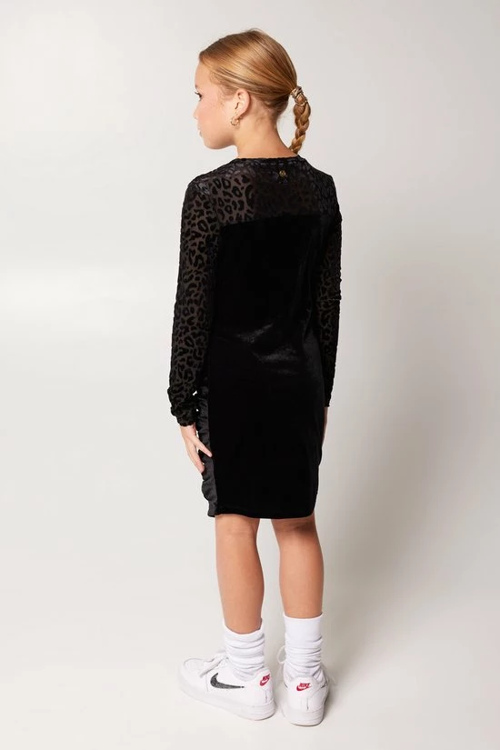 CoolCat meisjes jurk. De Dila is een jurk met een aansluitende fit en heeft lange mouwen. De jurk is gemaakt van verschillende materialen: een lekkere zachte velvet stof en mesh. Hiernaast heeft het ook een rimpelend effect. Deze jurk is perfect voor de feestdagen!