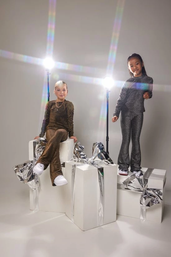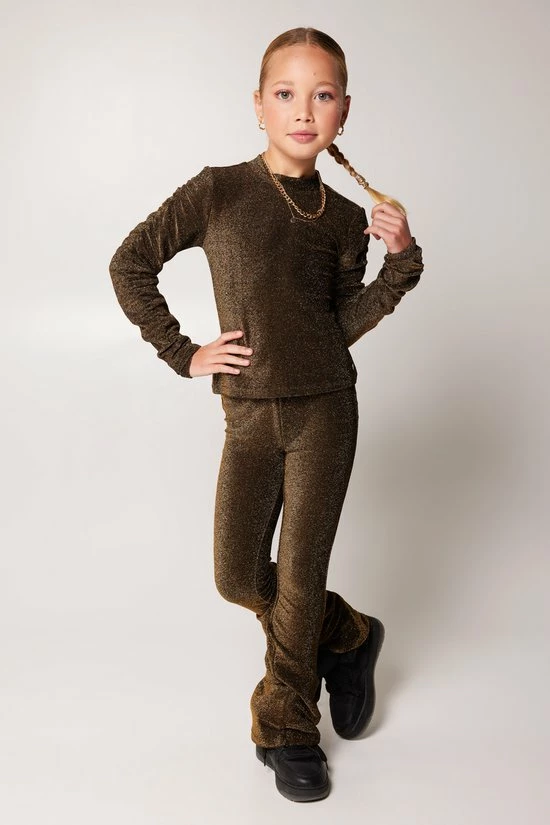 CoolCat meisjes broek. De Pearl is een hippe flared broek gemaakt van een lurex glitter materiaal. De broek is heerlijk elastisch waardoor je er vrij in kan bewegen.