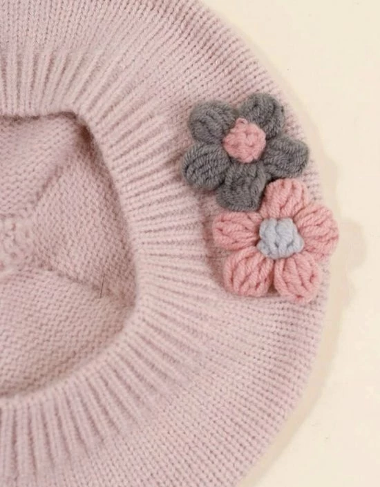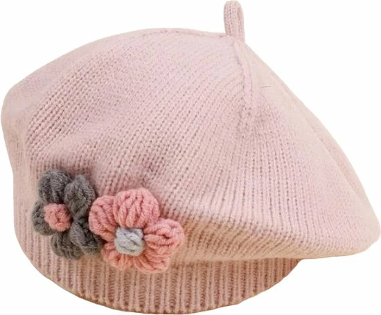 leuke kinder baret in een roze kleur met een bloemenlijn