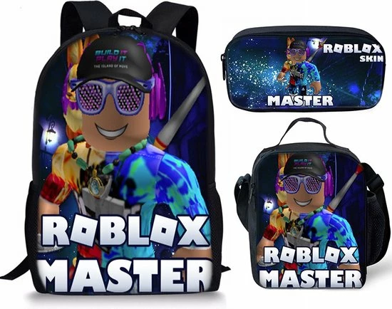 Gift Land® Roblox Rugzak- Kinder Rugtas En Pennen Etui Met Een Bijhorende Lunchtas – Blauw Schooltas – 16 Liter – 3 Ritsvakken