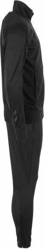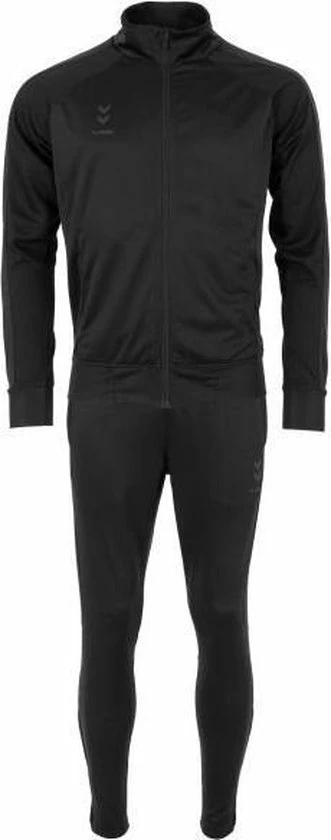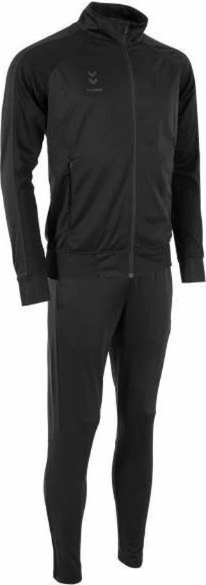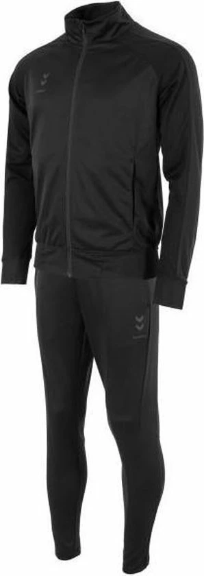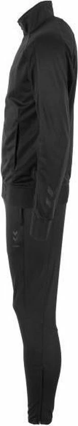 Ground Pro Tracksuit van hummel in de kleur zwart, geschikt voor heren en dames. De stijlvolle hummel Ground Pro Tracksuit is prettig te dragen voor en na het sporten of tijdens je warming up. Het jack is voorzien van mesh inzet in de mouwen en heeft een opstaande boord. De sluiting van het jack aan de voorzijde en de steekzakken in de Tracksuit zijn voorzien van SBS ritsen van hoogwaardige kwaliteit. De elastieken boord aan de mouw en onderkant van het jack zorgen ervoor het het jack mooi blijft zitten en dat warmte vastgehouden wordt. De pants van de hummel Tracksuit heeft aansluitende pijpen met elastisch rib materiaal op de kuiten en ritsen onderaan de broekspijpen. De broek heeft een elastische tailleband met koord om de broek aan te snoeren en netjes op de plek te houden. De hummel Groud Pro Tracksuit is uitstekend te bedrukken en is voorzien van high raised geprinte hummel logo’s. Gemaakt van 100% polyester.