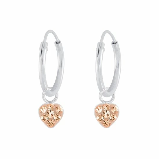 Sterling zilver 925 hartje bedel oorbellen – oorringen met kristal peach roze.