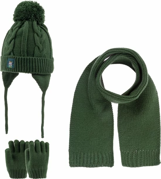 Kitti 3-Delig Winter Set | Muts Met Fleecevoering – Sjaal – Handschoenen | 1-4 Jaar Jongens | K22160-10-01 | Green