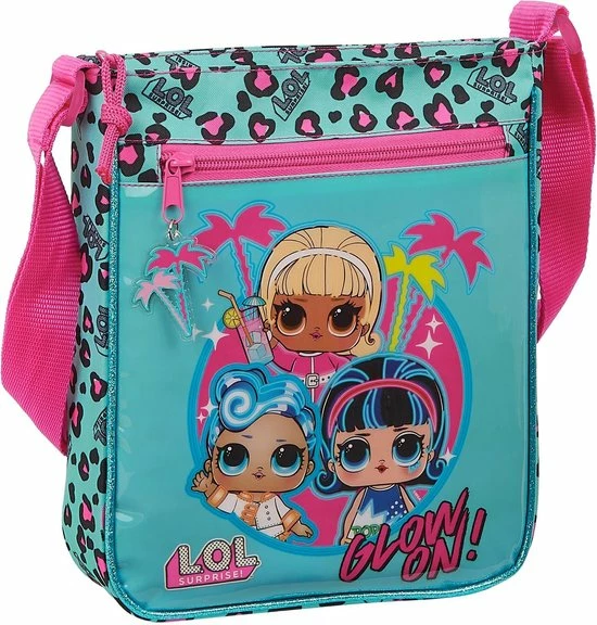 LOL Surprise! Schoudertas, Spring Fling. Dit leuke schoudertasje heeft 2 ritsvakken en een mooi roze verstelbare schouderband. Op de voorkant pronken de flamboyante meiden van LOL Surprise!