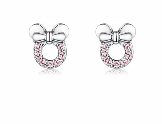 Oorbellen kinderen | zilverkleurige kinderen oorbellen | strik oorbellen | oorknopjes roze meisje | meisjes oorbellen | cadeau voor meisje | cadeau voor dochter