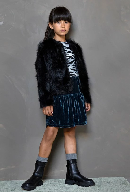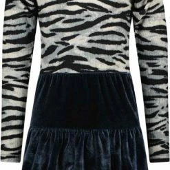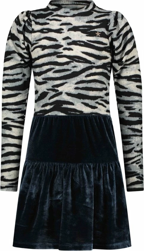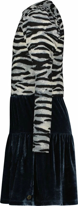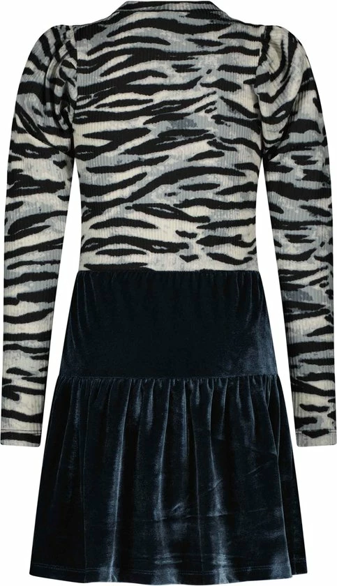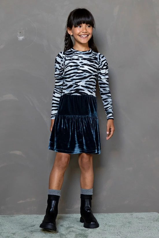 Like Flo zebra rib jurk met hippe pof mouwen en ice blue velvet rok. Pofmouwen zijn helemaal de bom dit seizoen! Uiteraard hebben wij deze trend vertaald naar draagbare en comfy pofmouwen. Een heerlijk zacht rib jurkje, met een prachtige zachte ice blue velvet rok. Wist je dat we alle jurkjes ook in losse tussenmaten verkopen voor een optimale fit? Het jurkje heeft een slimfit.