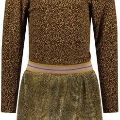 Like Flo camel animal jersey top met hippe pof mouwen en een goud metallic plissé rokje. Pofmouwen zijn helemaal de bom dit seizoen! Uiteraard hebben wij deze trend vertaald naar draagbare en comfy pofmouwen. Een heerlijk zacht jersey jurkje, met een girly gouden plissé rok. Hij heeft een mooie metallic glans en sportief gestreepte rib band met oker , soft pink en cerise. Wist je dat we alle jurkjes ook in losse tussenmaten verkopen voor een optimale fit? Het jurkje heeft een slimfit.