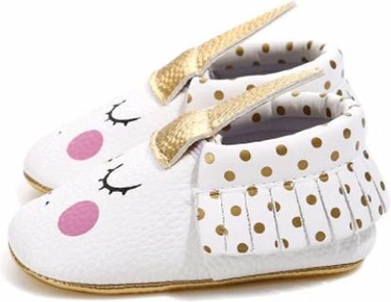 Merkloos Eenhoorn Baby Slofjes – Wit Roze Goud – 12/15 Maanden – Unicorn – PU Leer – Mocassins – Kraamcadeau – Babyshower