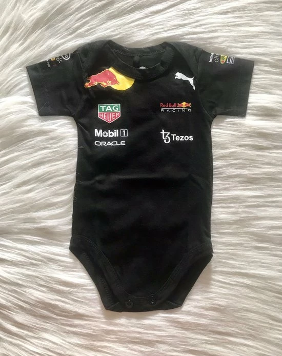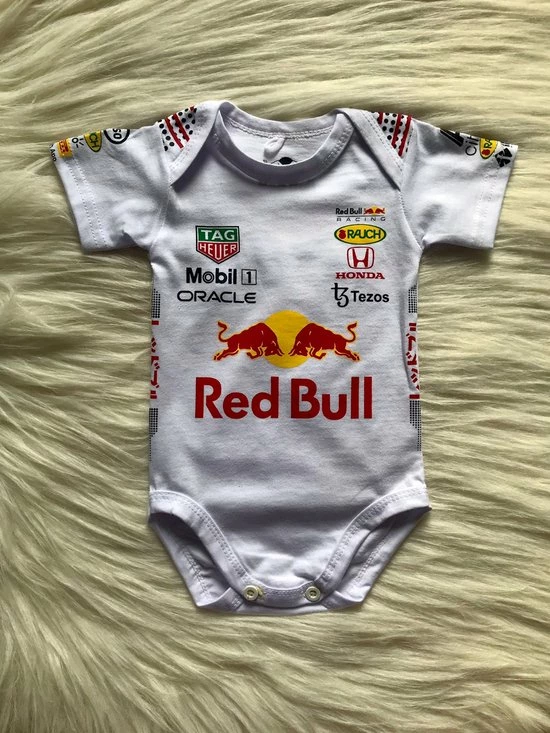 Geen saai kraamcadeau, maar een hip en stoer baby set van Red Bull Racing waarin je de show steelt op de baby shower!