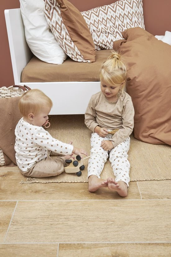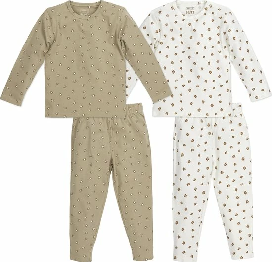 De set bestaat uit 2 pyjama’s die zijn gemaakt van 100% katoen. Hierdoor geniet je kindje van heerlijk zacht en comfortabel slaapcomfort. De pyjama’s hebben een ronde hals, lange mouwen en een broek met lange pijpen en een elastische tailleband. Dankzij de rustige kleuren en de lieve Panther print combineer je de pyjama’s ook onderling perfect met elkaar. Zo zit je altijd goed en grijp je nooit mis bij vlekken of ongelukjes. Even een nieuw t-shirtje of broekje aan en de superleuke set is weer compleet! De pyjama’s mix en matchen ook heel gemakkelijk met de complete Meyco Baby collectie.