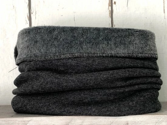Mooie donkergrijze colsjaal. Met fleece gevoerd dus heerlijk warm. Ideaal voor op de fiets of tijdens de wintersport.