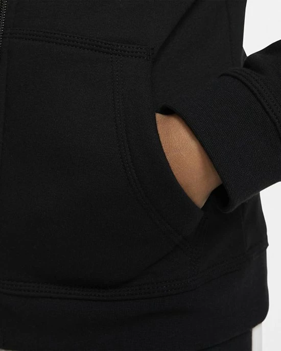 Nike Sportswear Club vest voor kids. Gemaakt van French Terry wat extra zacht aan voelt en je goed warm houdt. Met capuchon en zijzakken. Gemaakt van 80% katoen en 20% polyester.