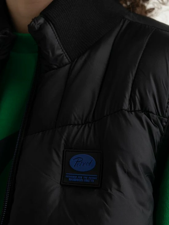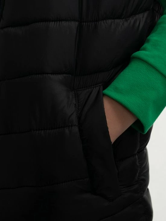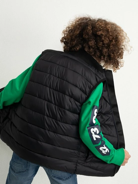 Bodywarmer met ritssluiting en twee steekzakken. De bodywarmer heeft een binnenzak en is gevuld met 100% gereycled polyester.