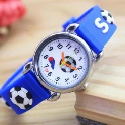 Fashion Favorite Kinder Horloge | Voetbal / Soccer Blauw | 3D Siliconen | Ø 25 Mm