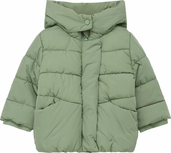 Leuke, gewatteerde mantel met capuchon en hoge kraag. Voorzien van een doorlopende ritssluiting en elastieken mouweinden. Gemaakt van 100% polyester en verkrijgbaar in twee kleuren.