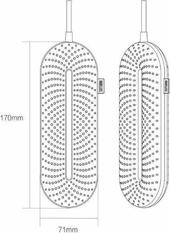 PORIGE WARMTEVERDELING: Met de 1532 gaten voor warmteverspreiding zijn de gaten in de schoenendroger strak verdeeld. Bij het verwarmen wordt een ringvormige hete luchtstroom gevormd in de schoenkamer, 360° warmte wordt gelijkmatig verdeeld over de zool en de bovenkant, en zelfs de dode hoeken kunnen gelijkmatig worden gedroogd.