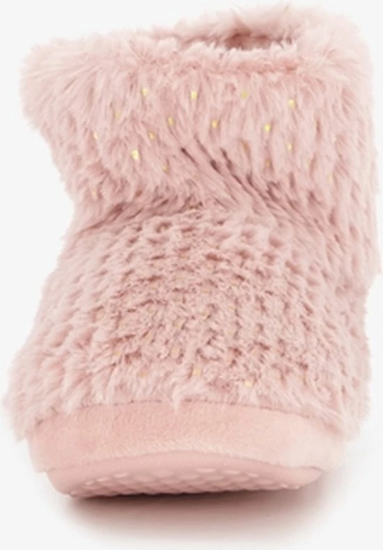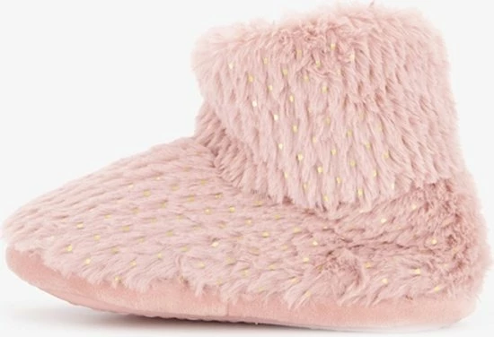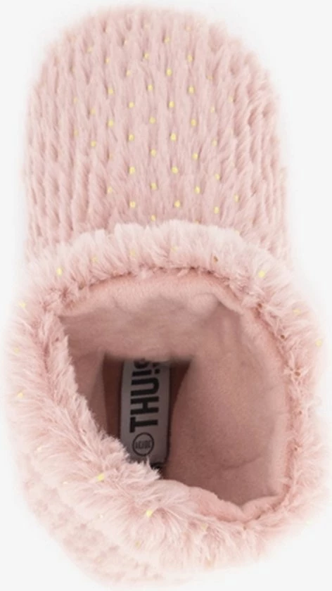 Roze hoge pantoffels voor meisjes uit de Thu!s collectie. Deze super zachte pantoffels zijn niet alleen lekker warm maar ook nog eens een feestje aan je voeten.