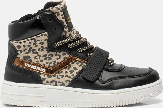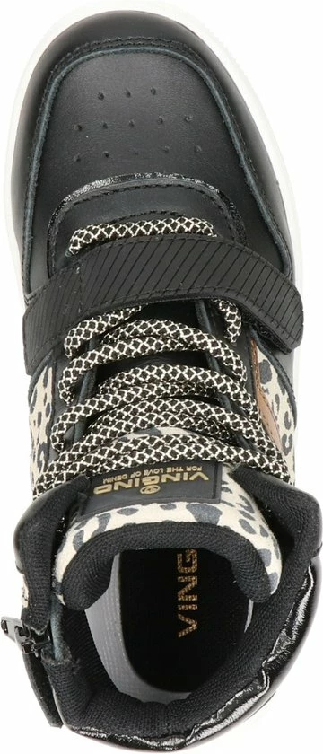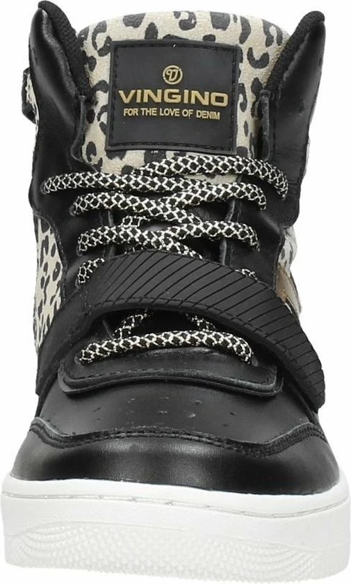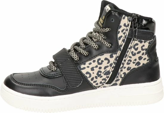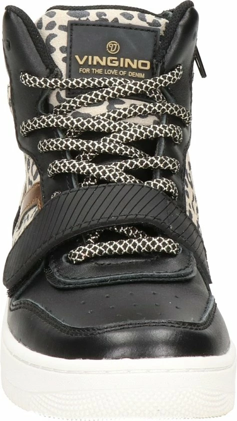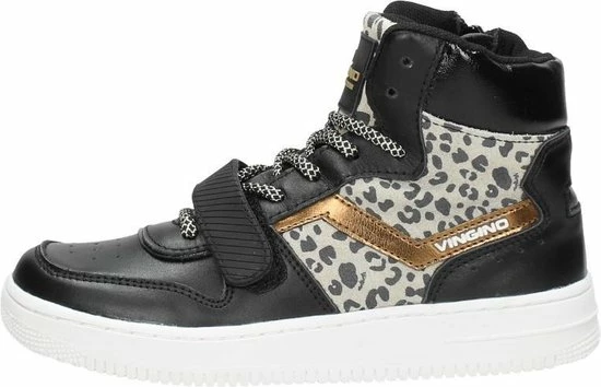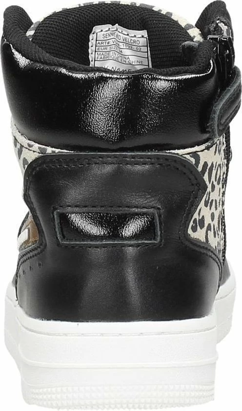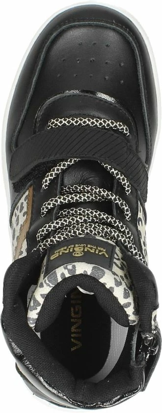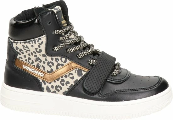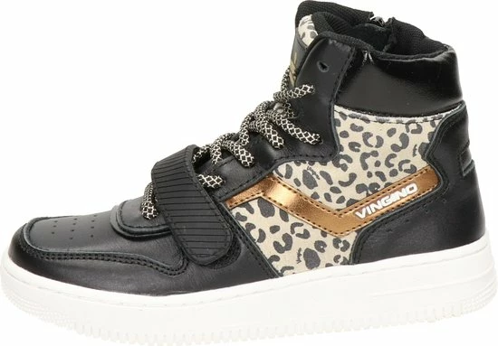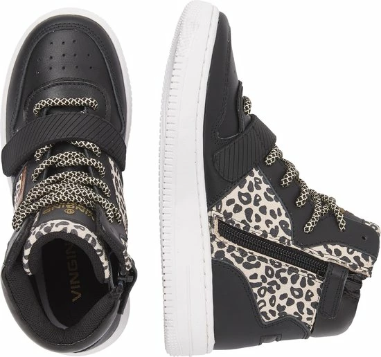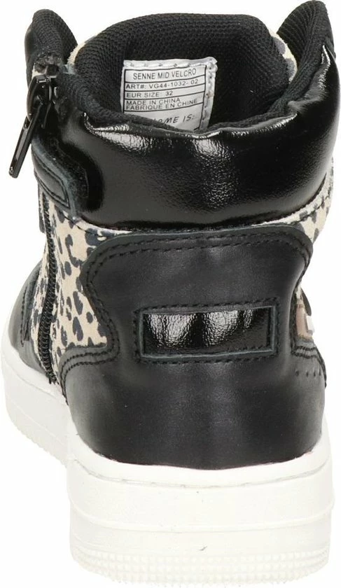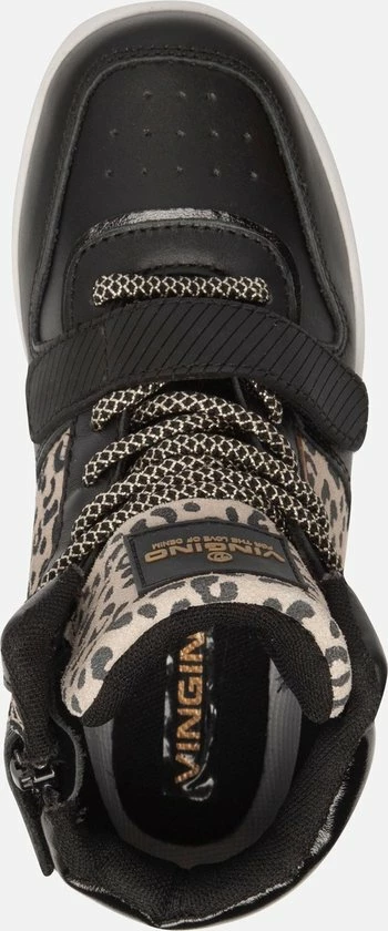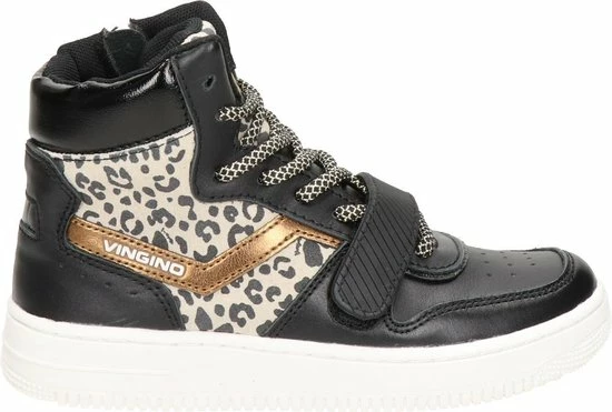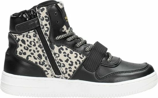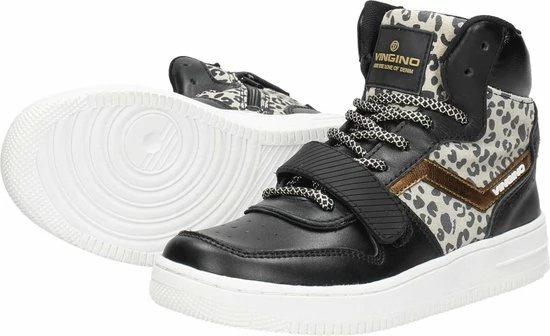 Vingino staat bekend om zijn opvallende sneakers. Zo ook deze trendy Senne Mid sneakers in het zwart. De opvallende luipaardprint geven de schoenen een stoere look. De sneakers zijn volledig uitgevoerd in het leer. Dit betekent dat het bovenwerk, de voering en comfortabele binnenzool zijn gemaakt van hetzelfde materiaal. Door het hoge model blijven de enkels ook lekker warm. Naast de luipaardprint, zijn ook merkopdrukken, perforaties en sierstiksels aangebracht. Door middel van een veter, in combinatie met de rits aan de zijkant het het klittenbandje op de wreef zijn de schoenen gemakkelijk aan en uit te doen. Ter bescherming zit aan de bovenkant van de rits ook nog een klittenbandje. De stevige zool is gemaakt van rubber. Goed om te weten: het voetbed van deze zwarte Vingino Senne Mid sneakers is niet uitneembaar.