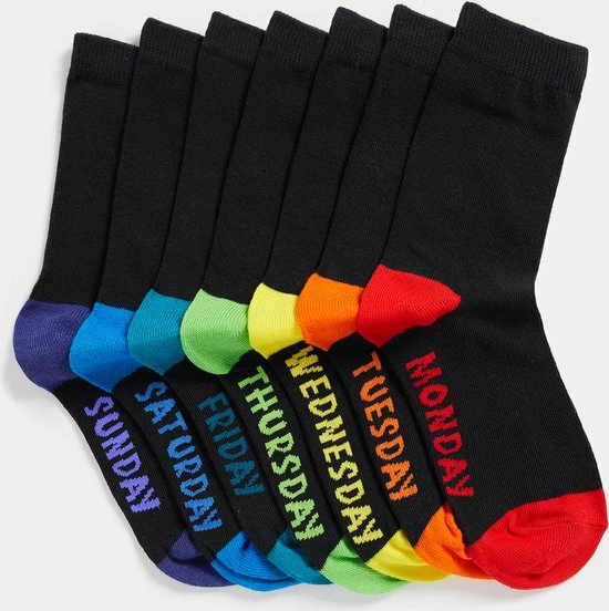 Een set van zeven paar sokken van een katoenmix met kleurdetail.