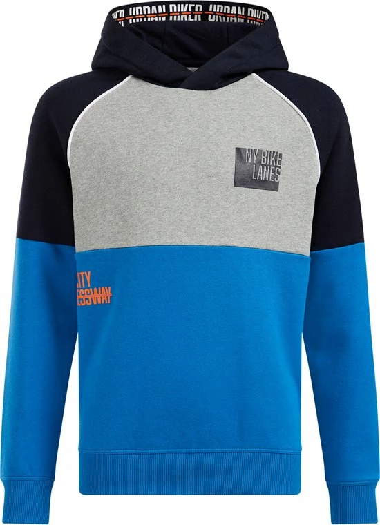 Een regular fit sweater van een katoenmix met colourblock, een fleece voering en opdruk. Het model heeft een capuchon en lange mouwen met geribde boorden.