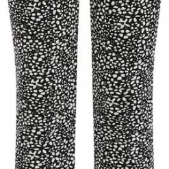 Een broek van stretchkwaliteit met een all-over dessin, een elastische tailleband en wijd uitlopende pijpen.