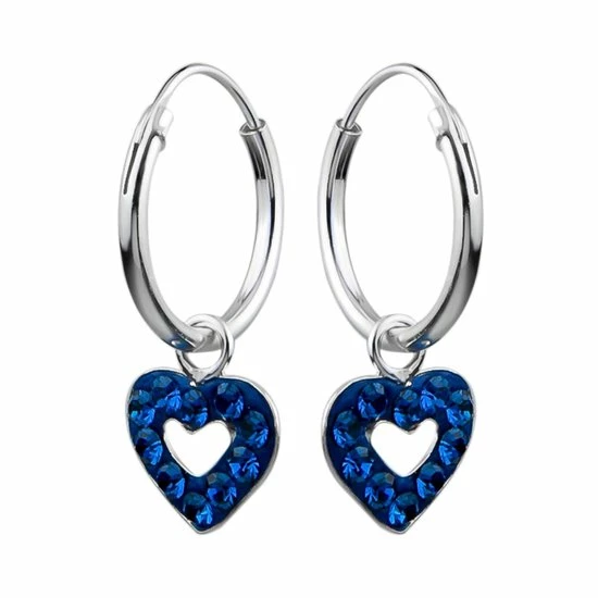 Oorbellen meisje zilver | Zilveren oorringen met hanger, gekleurd hartje met kristallen