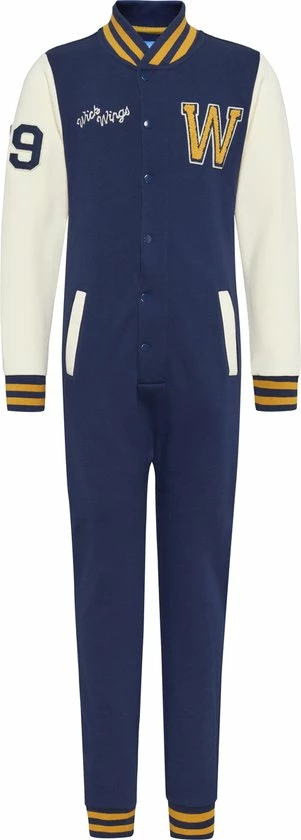 Deze sportieve baseball onesie van Wick Wings heeft de naam van het label op de linker chest geborduurd. Rechts zie je een vette kleurrijke embroiderie. Het is gemaakt van 80% heerlijk zacht katoen en 20% polyester en afgewerkt met gestreepte ribgebreide boorden. Deze varsity onesie met steekzakken heeft een dropped shoulder wat zorgt voor de stoere look. Op de zijkant staat het beroemde nummer 19.